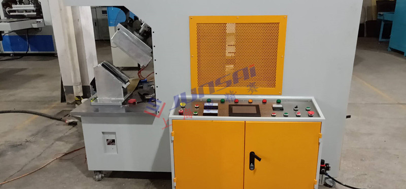 將生產(chǎn)所需生產(chǎn)的材料放入到指定位置,設(shè)備就可以自行運(yùn)轉(zhuǎn),防護(hù)罩下降,高頻焊接頭下降,冷卻上升。