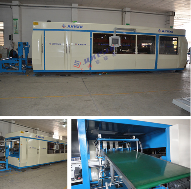 駿賽產(chǎn)品部新推出正負(fù)壓成型沖切一體吸塑機(jī),該設(shè)備為吸塑加工行業(yè)節(jié)約人力成本、提供品質(zhì)及提高產(chǎn)能奠定了先決條件。吸塑裁切一體機(jī)操作方便、結(jié)構(gòu)穩(wěn)固、占地面積小、通用性強(qiáng),從自動(dòng)上料卷到自動(dòng)執(zhí)行正負(fù)壓吸塑到自動(dòng)沖切到人工收取成品,一個(gè)人可完成,正負(fù)壓吸塑機(jī)的運(yùn)作方式在常規(guī)吸塑機(jī)基礎(chǔ)上在快很多,效率提升較多,使加工制品單件成本下降較多,保障了用戶(hù)的競(jìng)爭(zhēng)力,設(shè)備可根據(jù)客戶(hù)需求定制。